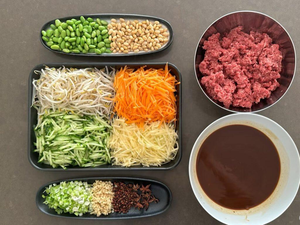 A daily staple for Beijingers! Hearty hand-pulled noodles topped with savory soybean paste, paired with fresh cucumber and bean sprouts—simple, flavorful, and satisfying any time of day.